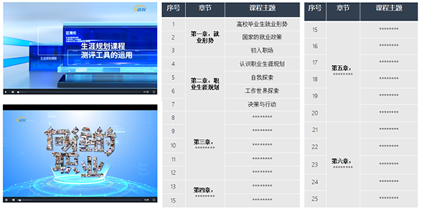 打造师生共读共学共成长课程,以“高校职业生涯规划导师培训方案”为基础课程,助力教师夯实教学与指导能力;以职业生涯主题讲座、大学生涯规划课程(学生版)、职业发展体验课程活动为核心课程,全面助力学生发展。