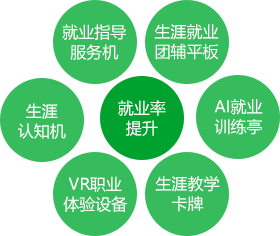 打造软硬件教育装备,生涯信息系统、就业指导系统、生涯中心服务系统(就业指导中心)、高校就业大数据看板等软硬件终端设备,搭配教学教具,通过线上线下渠道,助力学校开展职业发展与就业指导工作,帮助学生提升职业生涯规划能力。